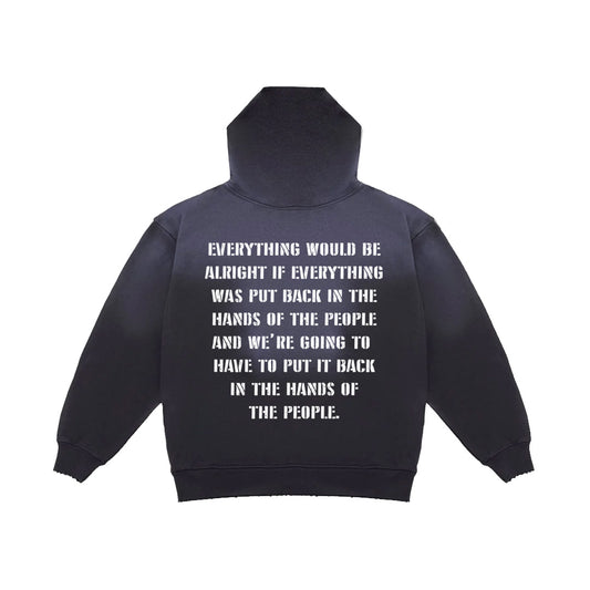 SURVIVE AMERICA DISTRESSED HOODIE (BLACK POTASSIUM WASH)